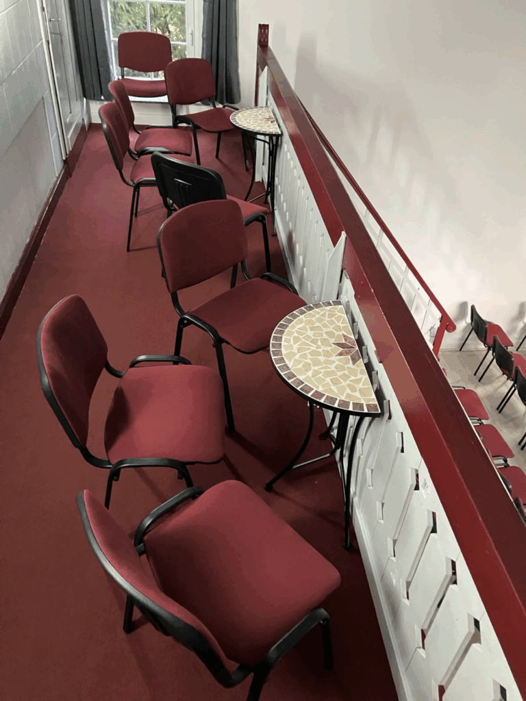 VIP-Tische: ab sofort können Tische auf der Empore im Rahmen eines VIP-Paketes gebucht werden. Es enthält einen eigenen Tisch auf der Empore, ein Glas Wein pro Person (alternative Getränke sind möglich), Wasser und Knabbereien sowie Zugang zu einem eigenen Kühlschrank, aus dem weitere Getränke entnommen werden können. Diese werden nach Verbrauch abgerechnet.